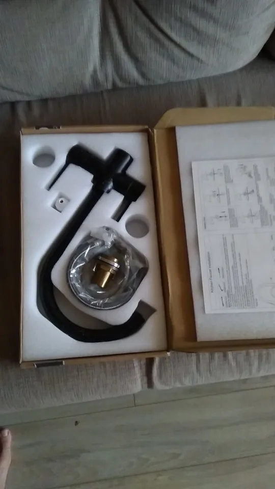 Красивый, удобный, монтаж простой, шланги супер, все интуитивно, инструкция простая, сразу подключил проточный фильтр, напор огонь! Продавца рекомендую, с продавцом не общались, т.к. все пришло быстро и продукт качественный!