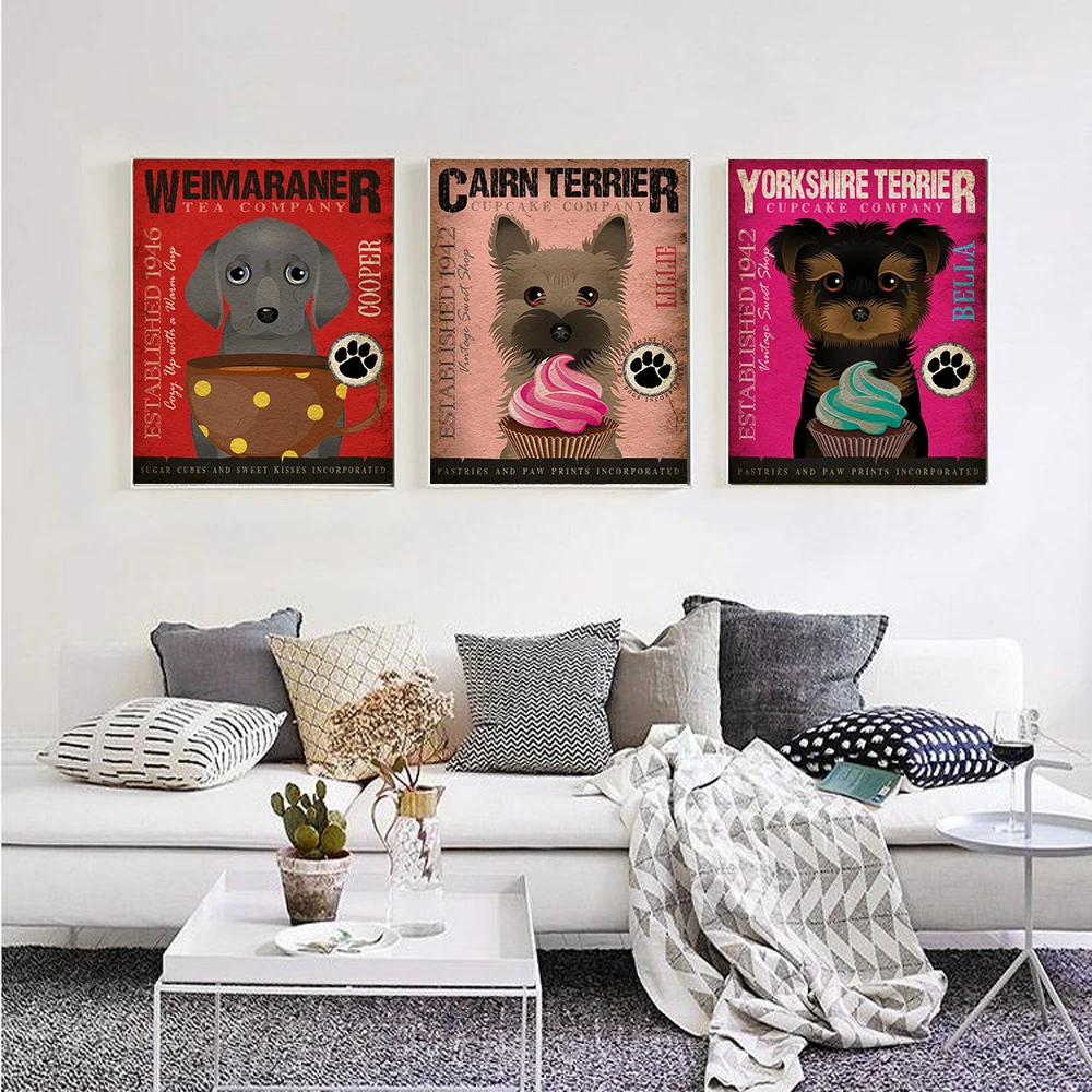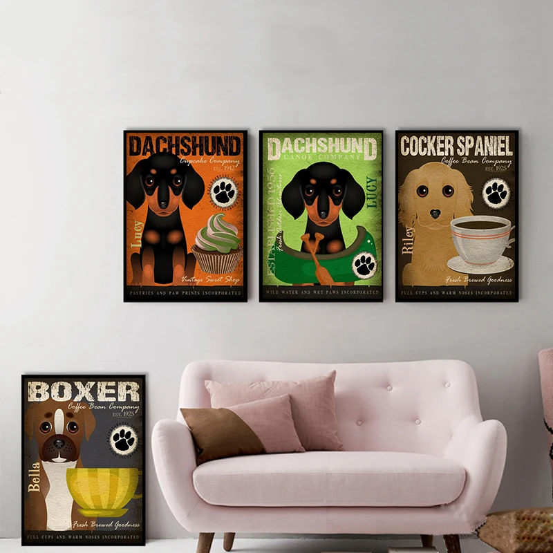 Картина маслом с изображением мороженого, кофе, коричневого, розового цветов, Милый Постер с изображением собаки, домашнее животное, Настенная картина для гостиной, украшение для дома, печать на холсте