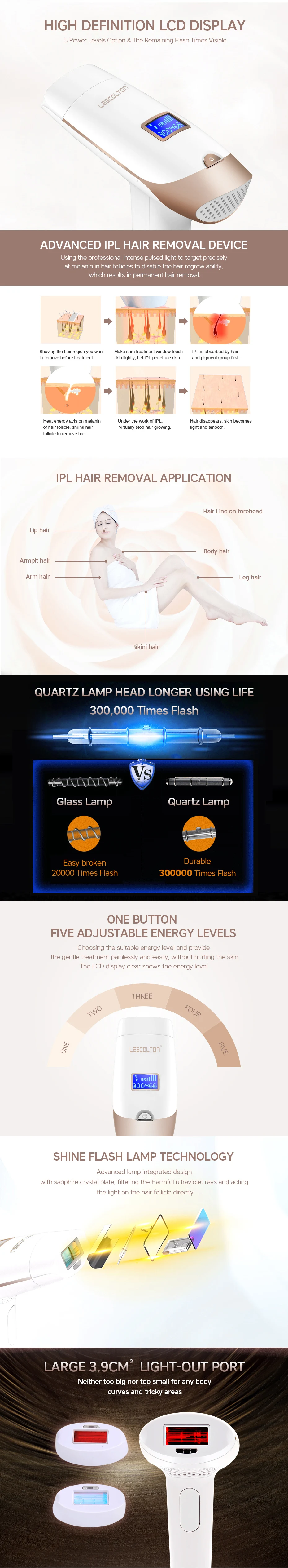 Эпилятор Lescolton IPL 2 в 1, Машинка для удаления волос с ЖК-дисплеем, лазерный Перманентный триммер для зоны бикини, Электрический депилятор