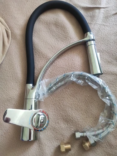 Черный шланг, смеситель для кухни, Одноручный распылитель, кухонный кран с хромированной отделкой и кронштейном