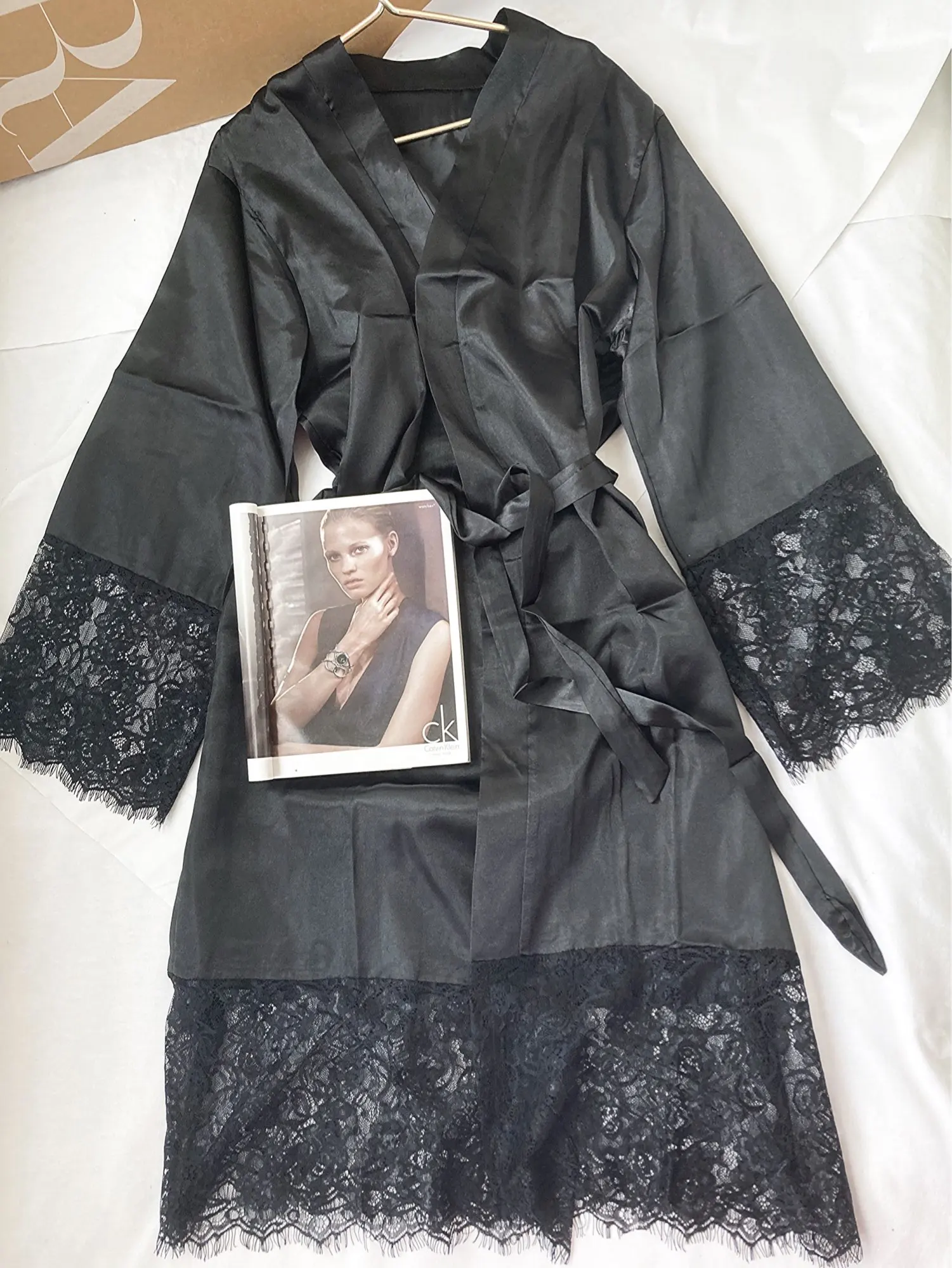 Женский кружевной халат, шелковое кимоно, ночная рубашка, для невесты, подружек невесты, размера плюс