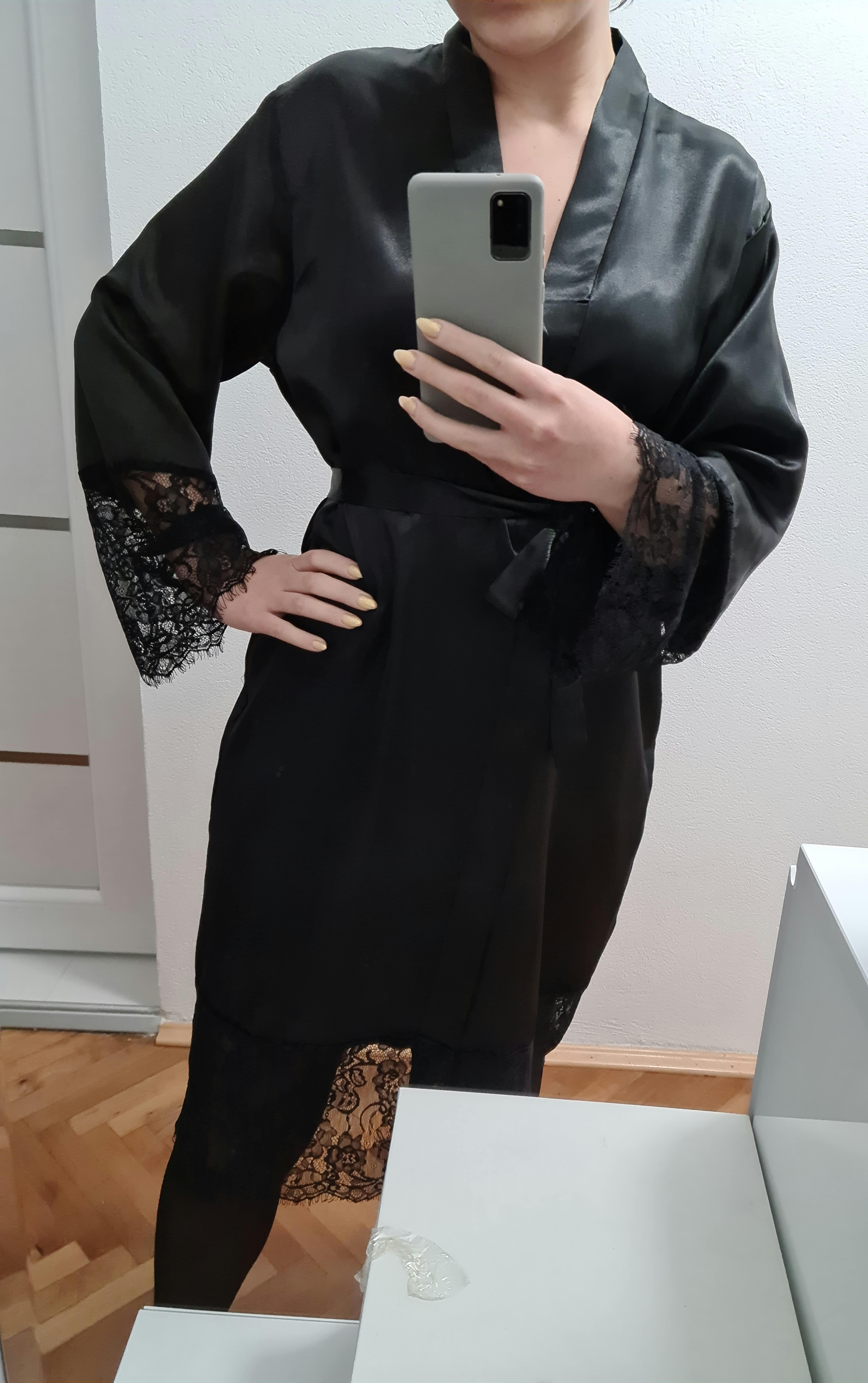 Доставка до Санкт-Петербурга всего 15 дней. Трек отслеживается на всем пути. Сам халат сшит аккуратно, нитки не торчат, швы ровные. Сидит по фигуре. Одна беда. Надо к этому халату заземление! Шелк. этим всё сказано. Электризуется и щелкает только успевай руки лтдергивать.