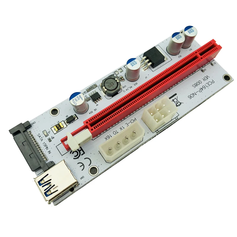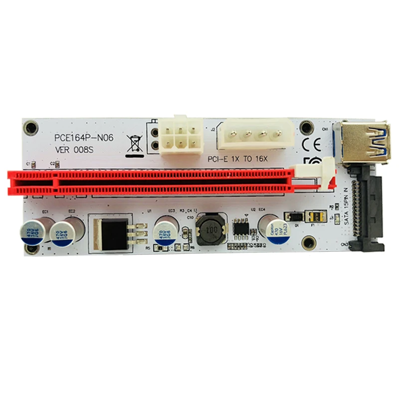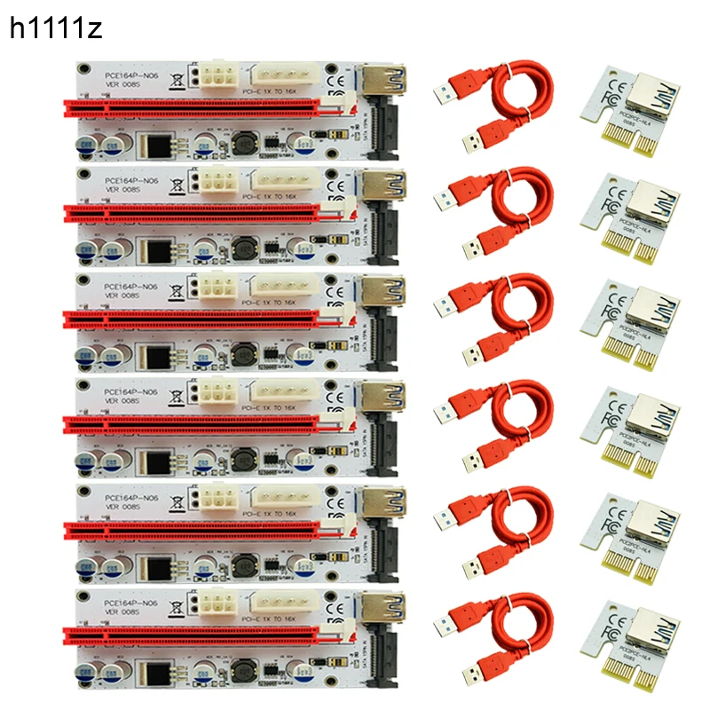 6 шт., переходная карта VER008S 60 см PCI-E 008S PCIe 1x к 16x с 4pin 6pin Sata питание + USB 3,0 кабель для майнинга биткоинов
