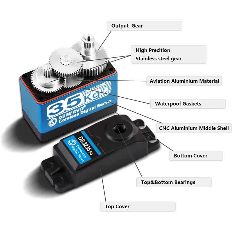 1 сервопривод без сердечника с высоким крутящим моментом, 35 кг, цифровой и водонепроницаемый сервопривод DS3235, сервопривод arduino для роботов сделай сам, Радиоуправляемый автомобиль