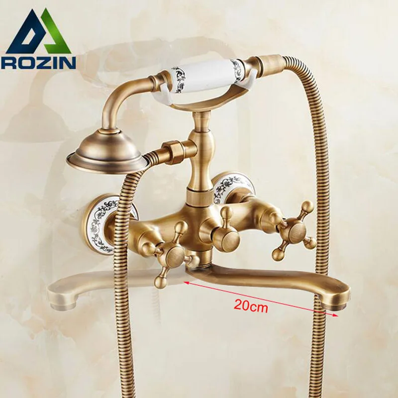 Настенный смеситель для ванной комнаты старинный латунный телефон стильный смеситель для ванны с ручной душевой лейкой