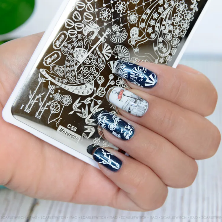 Японская серия штамповки для ногтей шаблон изображения Печать художественные пластины трафарет Гейша цветы Бабочка для украшения ногтей C58