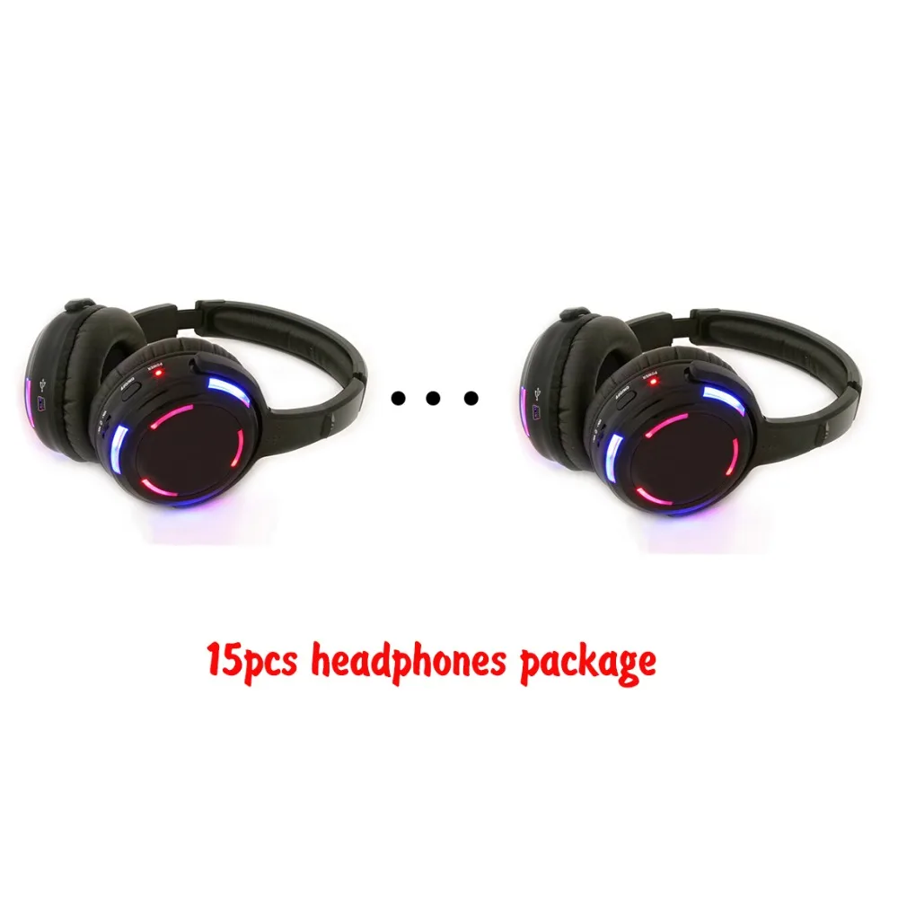 15 x Беспроводные диско-наушники15 x USB-кабелей для зарядки