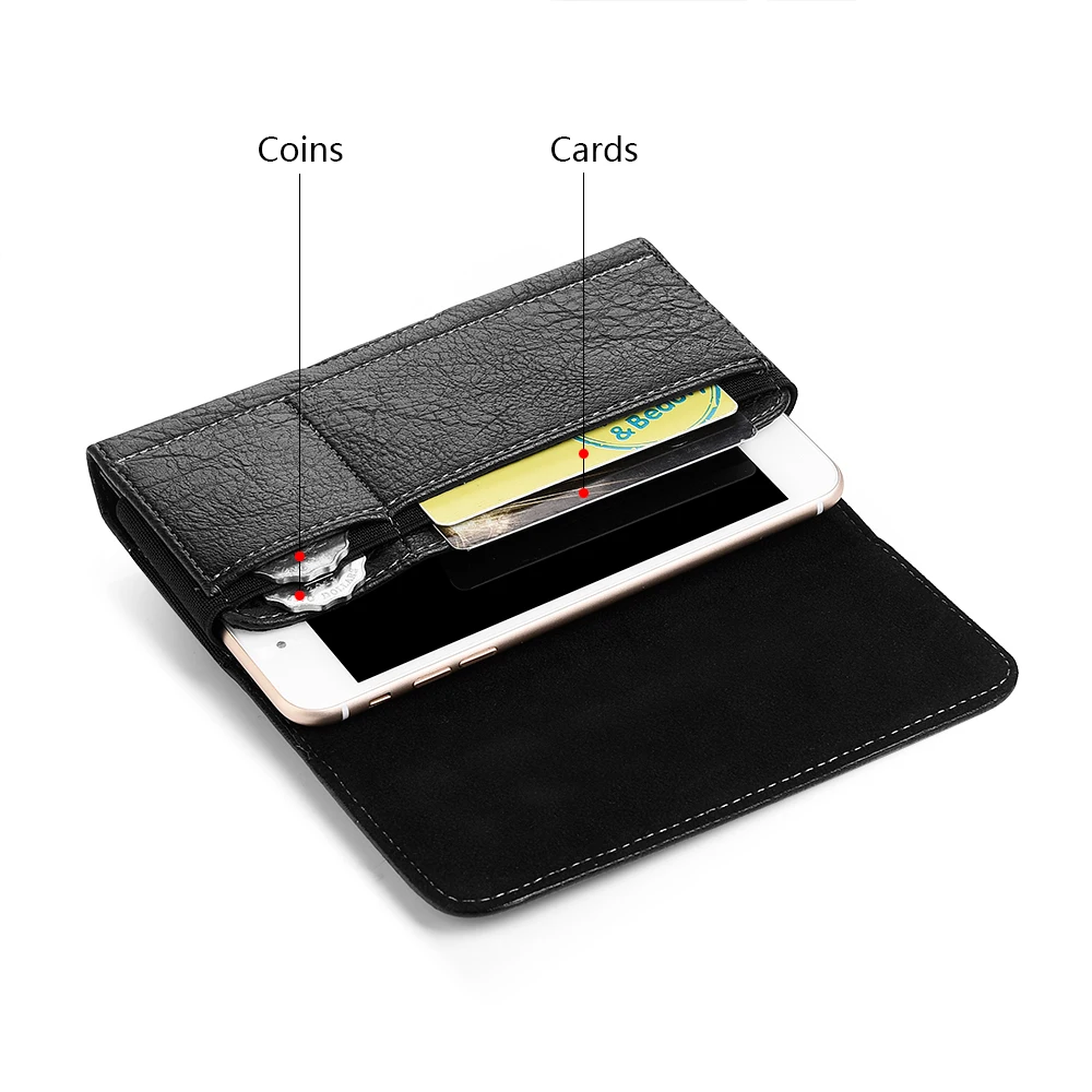 Универсальный чехол-сумка на пояс для телефонов с экраном 4,75,56,3", кожаный, цвет черныйкоричневый