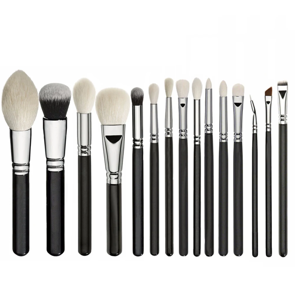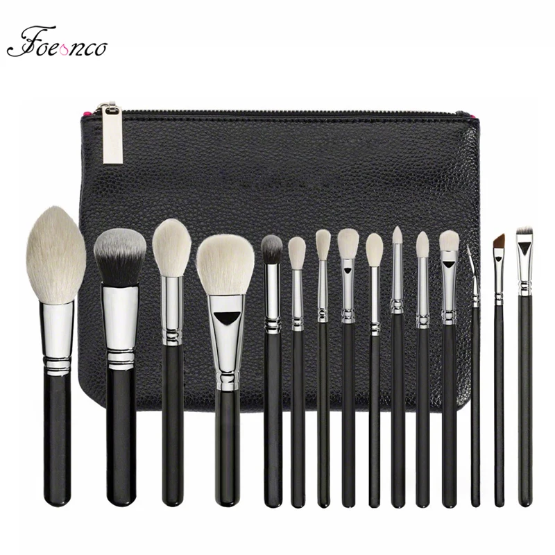 15 шт. черные синтетические волосы макияж кисть большая Пудра основа Румяна Тени для век Контур Макияж Кисти набор с косметический чехол ЧехолКисти в комплекте: