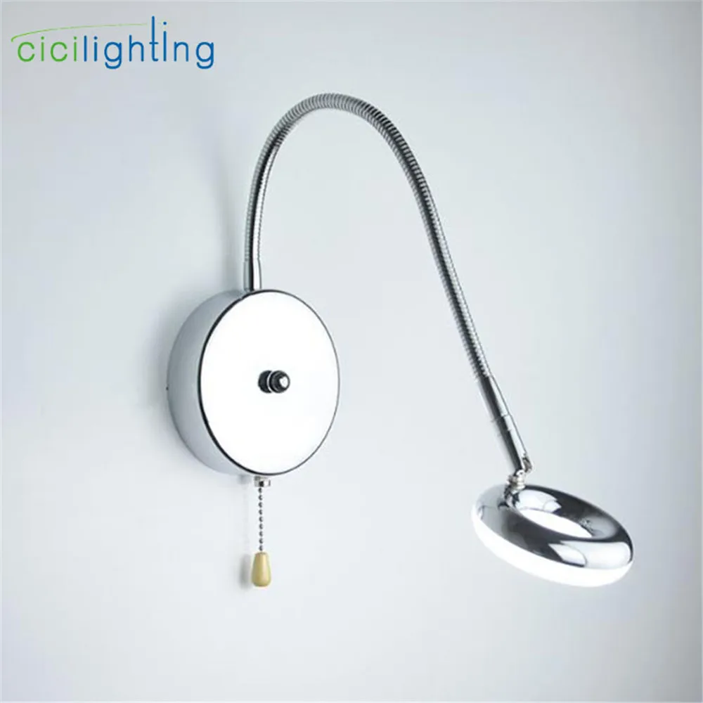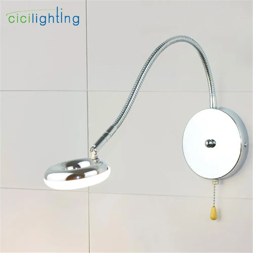 Промышленный прикроватный светильник для чтения с гусиной шеей 5 Вт, Настенныйподключаемый к изголовью светодиодный светильник для художественной галереи с цепным переключателем