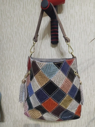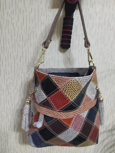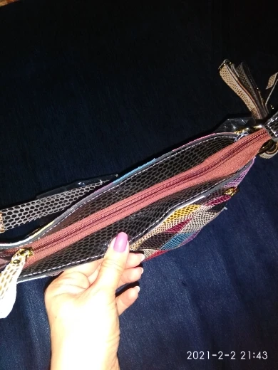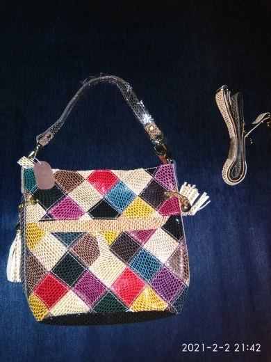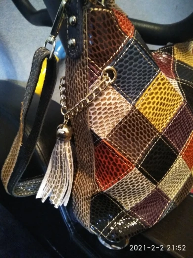 сумка пришла довольно быстро, она действительно кожаная, из прессованой кожи, живьём выглядит даже лучше, средних размеров, мне понравилась, на лето идеальна