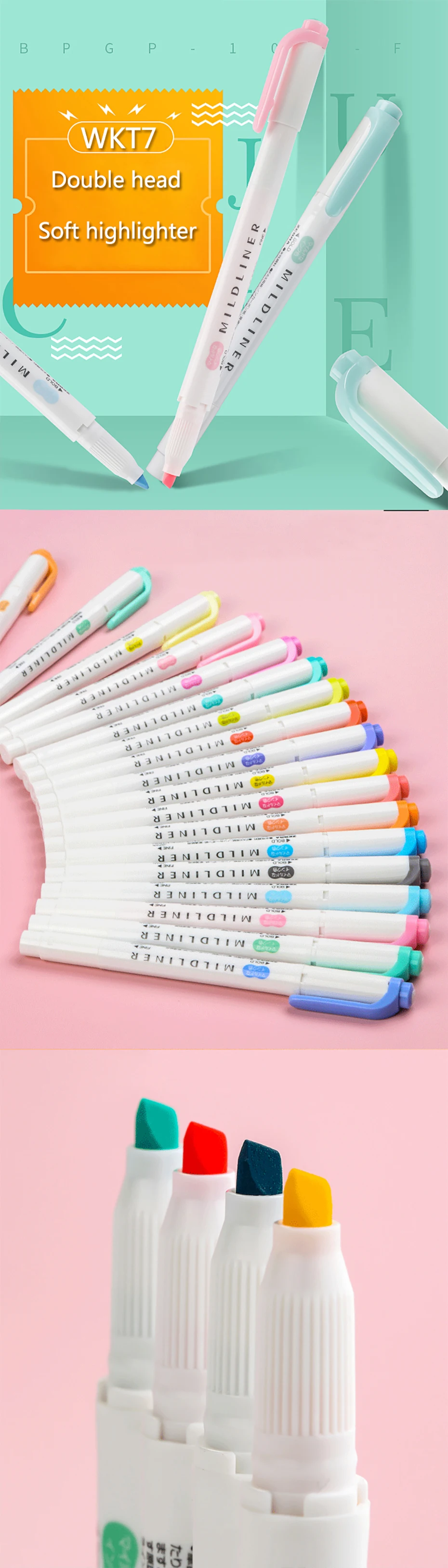 1 шт., флуоресцентный двусторонний маркер Mildliner WKT7 серии мягких пастельных цветов, доступны в фотографиях