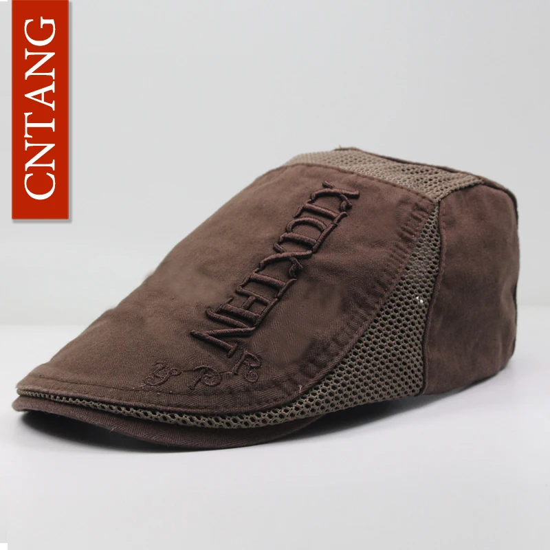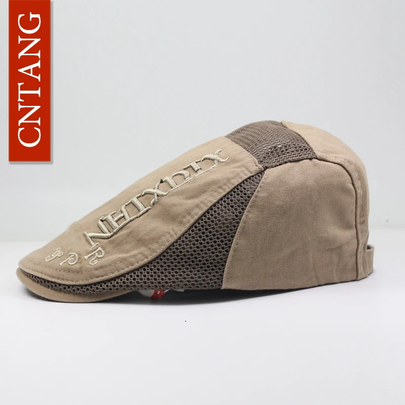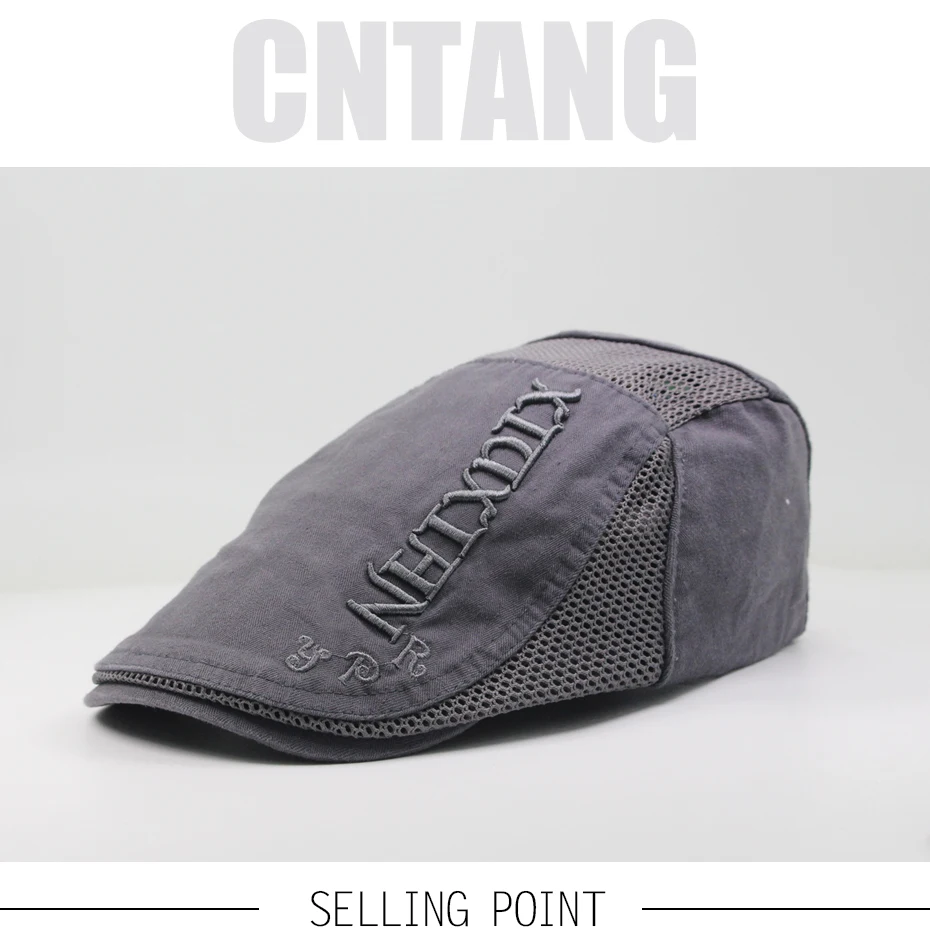 Берет CNTANG мужской сетчатый повседневный, модный винтажный хлопковый берет на плоской подошве, с надписью, Воздухопроницаемый козырек, на лето
