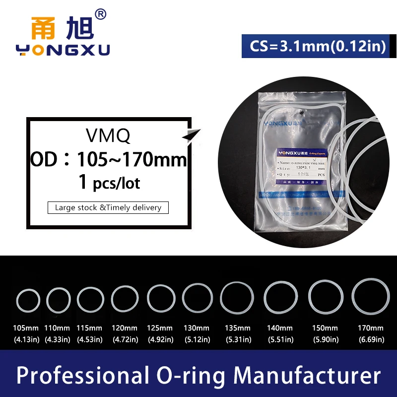 Белое Силиконовое уплотнительное кольцо, диаметр 110 мм, наружный диаметр 105120130135140150170*3,1 мм, уплотнительное кольцо, резиновая прокладка, шайба колец