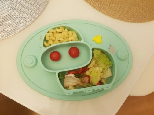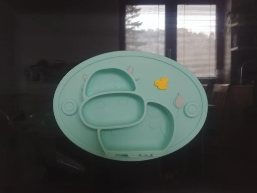 просто супер тарелка, отделения плотные, высокие бортики, запаха нет, с липучки- ребенку не оторвать, и красивая очень!