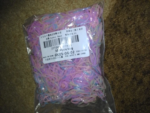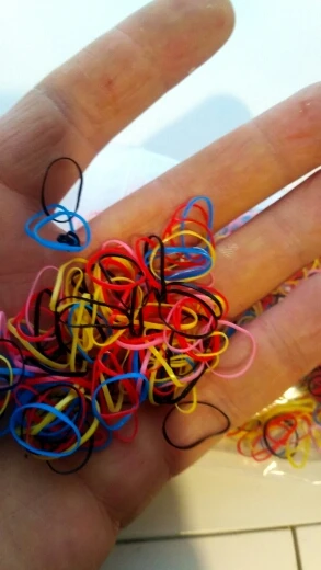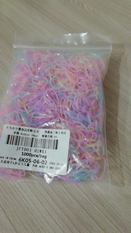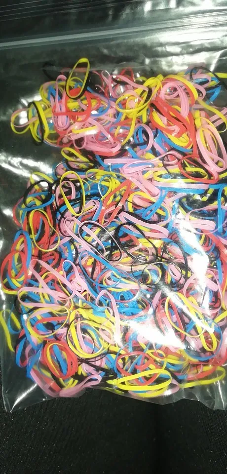 Доставка два месяца. Трек не отслеживался. В упаковке 1000 штук. Резиночки маленькие и плотные, очень удобные, цвета яркие. Покупкой довольна. Буду брать еще.