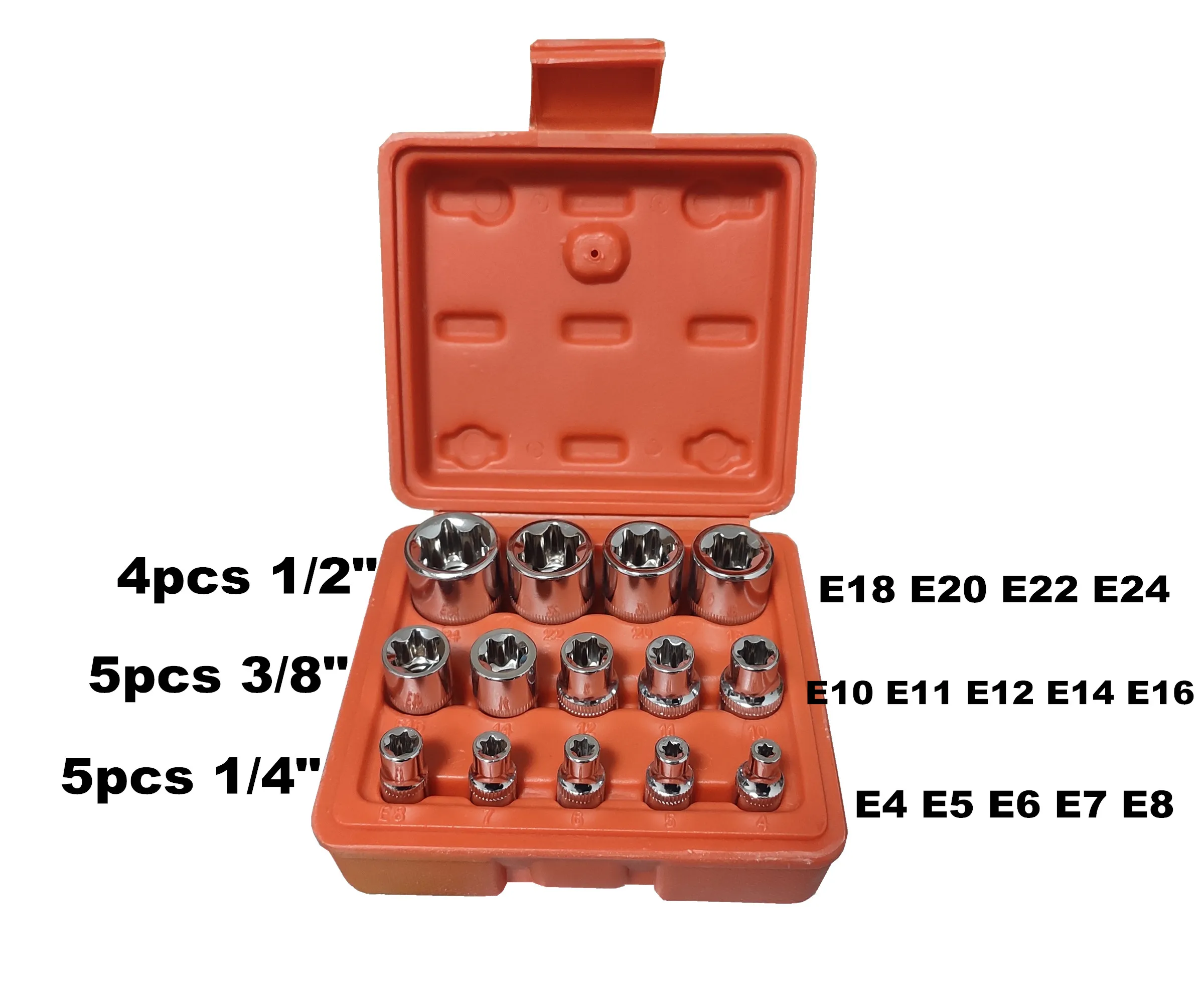 Набор торцевых головок Milda, 14 шт.компл., звездообразный Набор торцевых головок 12 дюйма, 38 дюйма, 14 дюйма, E4-E24, для ремонта, высокое качество