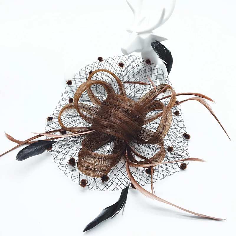 Женская Тюлевая вуаль, Шпилька с пером, 20 см, свадебные аксессуары для волос, заколки на волосы для вечеринки