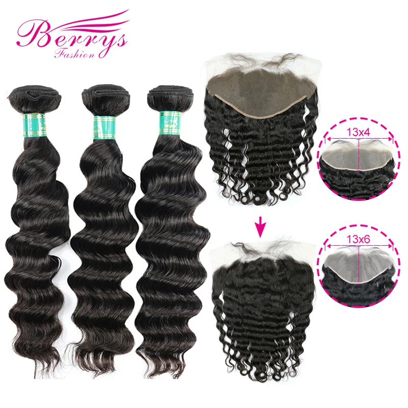 Berrys модная свободная волна пряди с 13X4/13x6 Кружева Фронтальная застежка 10-28 дюймов 100% необработанные натуральные кудрявые пучки волос пряди