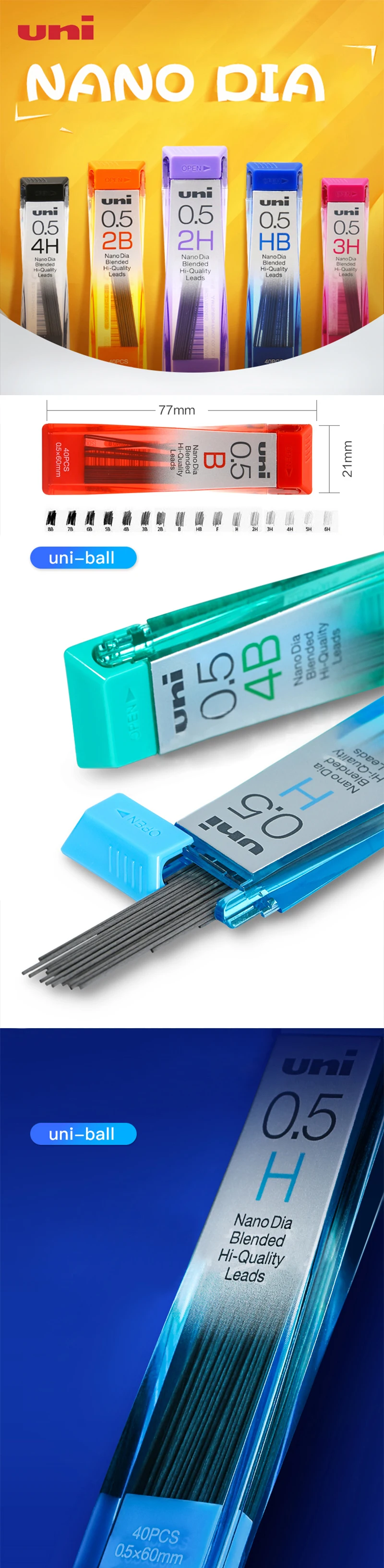 Автоматический стержень для карандаша UNI 202ND, нанографит 2BHB2H для учеников начальной школы, 0,30,50,7 мм, 1 шт.