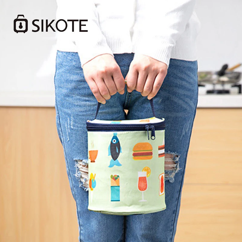 SIKOTE Оксфордские термоохладительные сумки, утолщенные сумки для обеда, для еды, фрукты, круглые Изолированные сумки для женщин, складные, свежие, сохраняющие