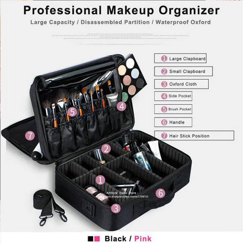 Профессиональный Чехол для макияжа, вместительный органайзер для косметики, несессер на плечо, портативная дорожная косметичка для костюма, чехол