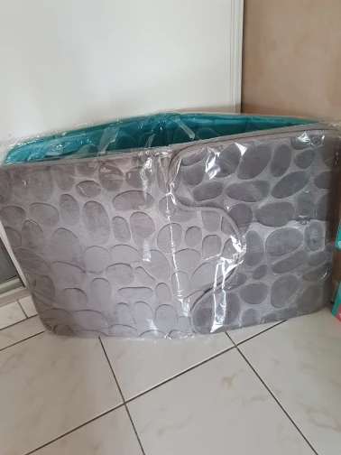 Пришёл товар быстро. На ковре в ванную есть дефект ( чёрная полоса как от маркера) Качество, не очень скользкий верх ковра. В общем какие деньги такое качество.