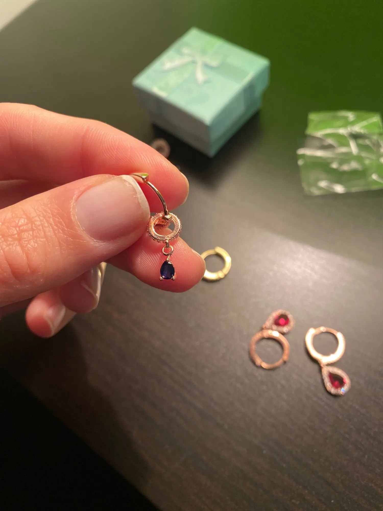 Серьги-подвески женские в форме капли розового золота, с фианитами