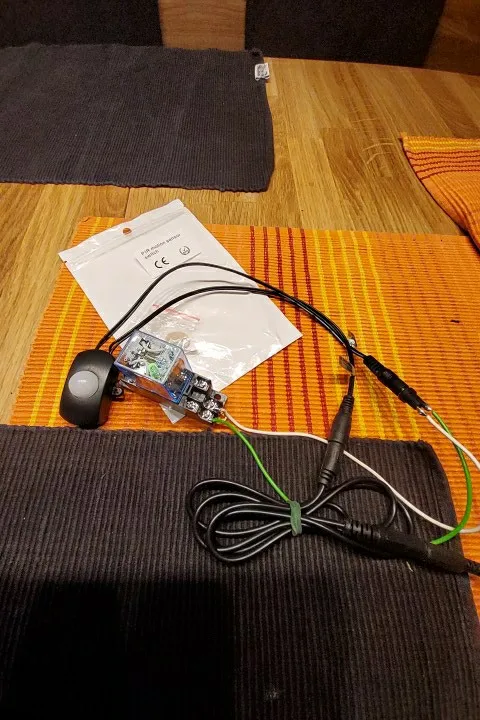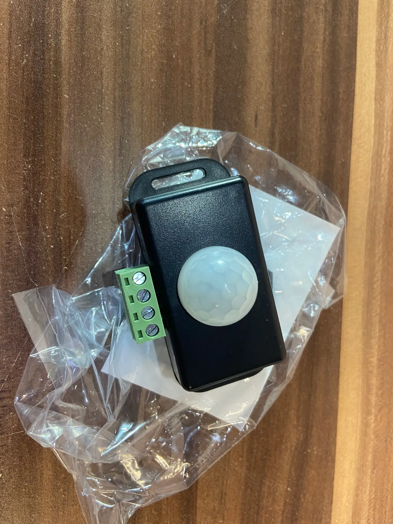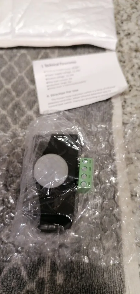 came quickly with aliexpress shipping. works well, thoughtful sellee to have the connectors ready. PIR sensor latching timing could be slightly faster still.