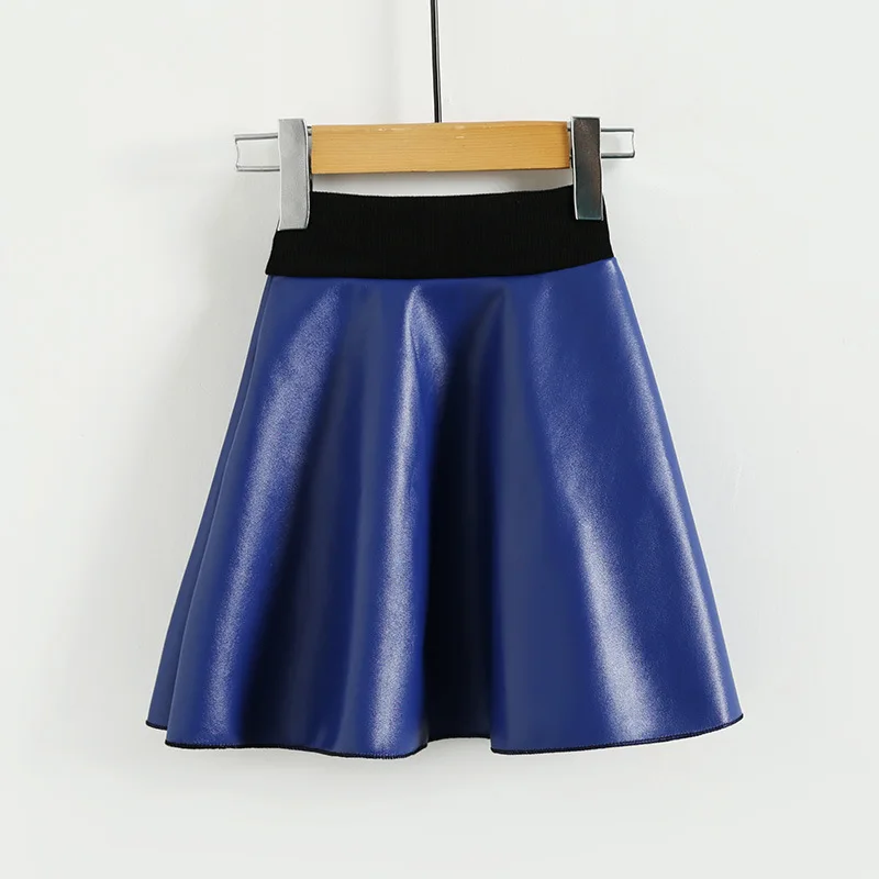 Юбки для девочек, новая модная юбка-пачка из искусственной кожи с эластичным поясом, От 2 до 7 лет, осенняя черная Детская короткая юбка, детская одежда