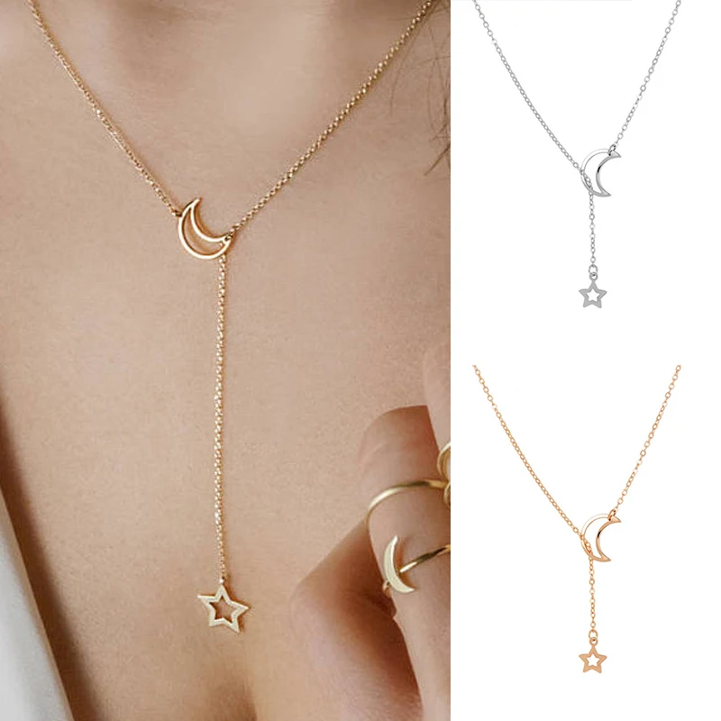 Простое ожерелье с подвеской в виде Луны, серебряное золотое ожерелье с цепочкой, колье с Луной и звездой, ювелирные изделия 2018 Мода