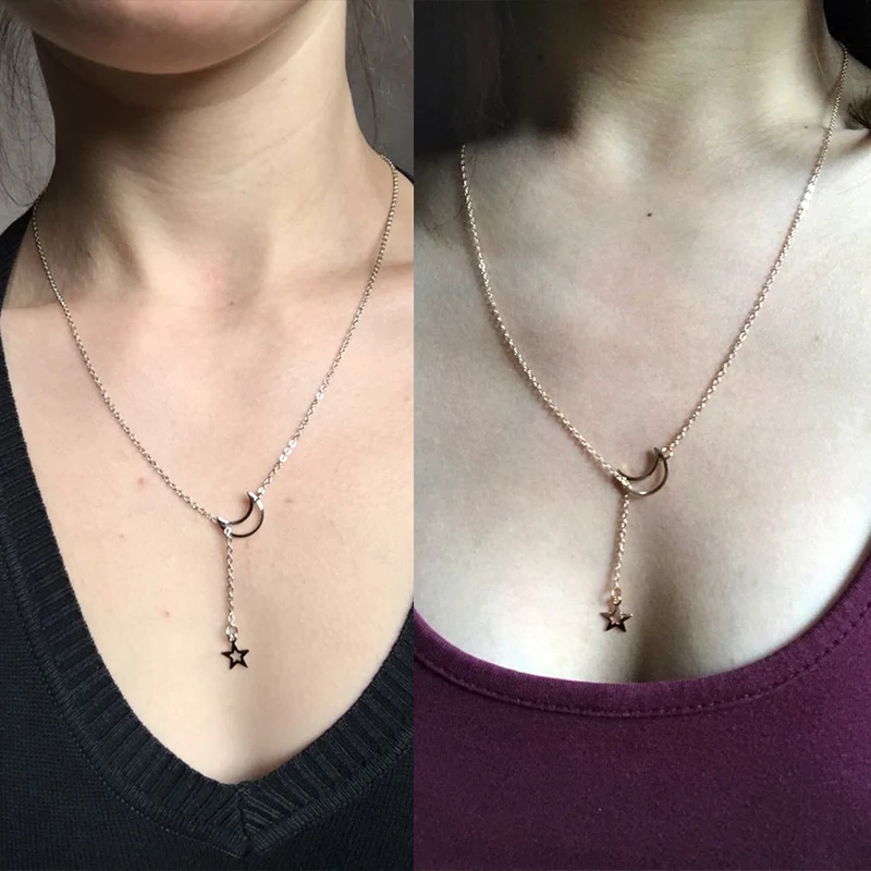 Простое Ожерелье с Луной, кулон золотистого и серебряного цвета, ожерелье с цепочкой, колье с Луной и звездой, ювелирное изделие, модный подарок для лучшего друга