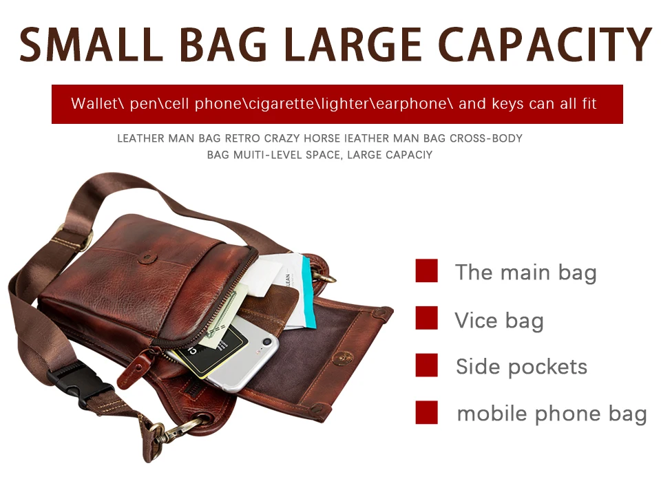 Сумка-мессенджер мужская из кожи Crazy Horse, многофункциональная, 211-4-d