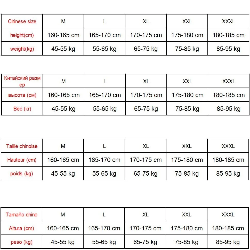 Китайские размеры отличаются от размеров вашей страны!