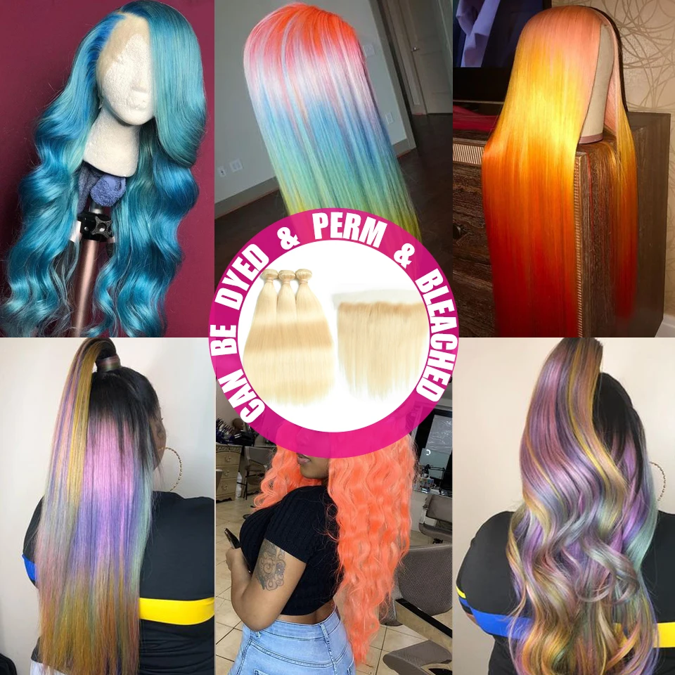 Пряди блонд с фронтальной частью, 3 пряди с застежкой 13X4, 613, бразильские прямые, 613, натуральные кудрявые пучки волос пряди с фронтальной
