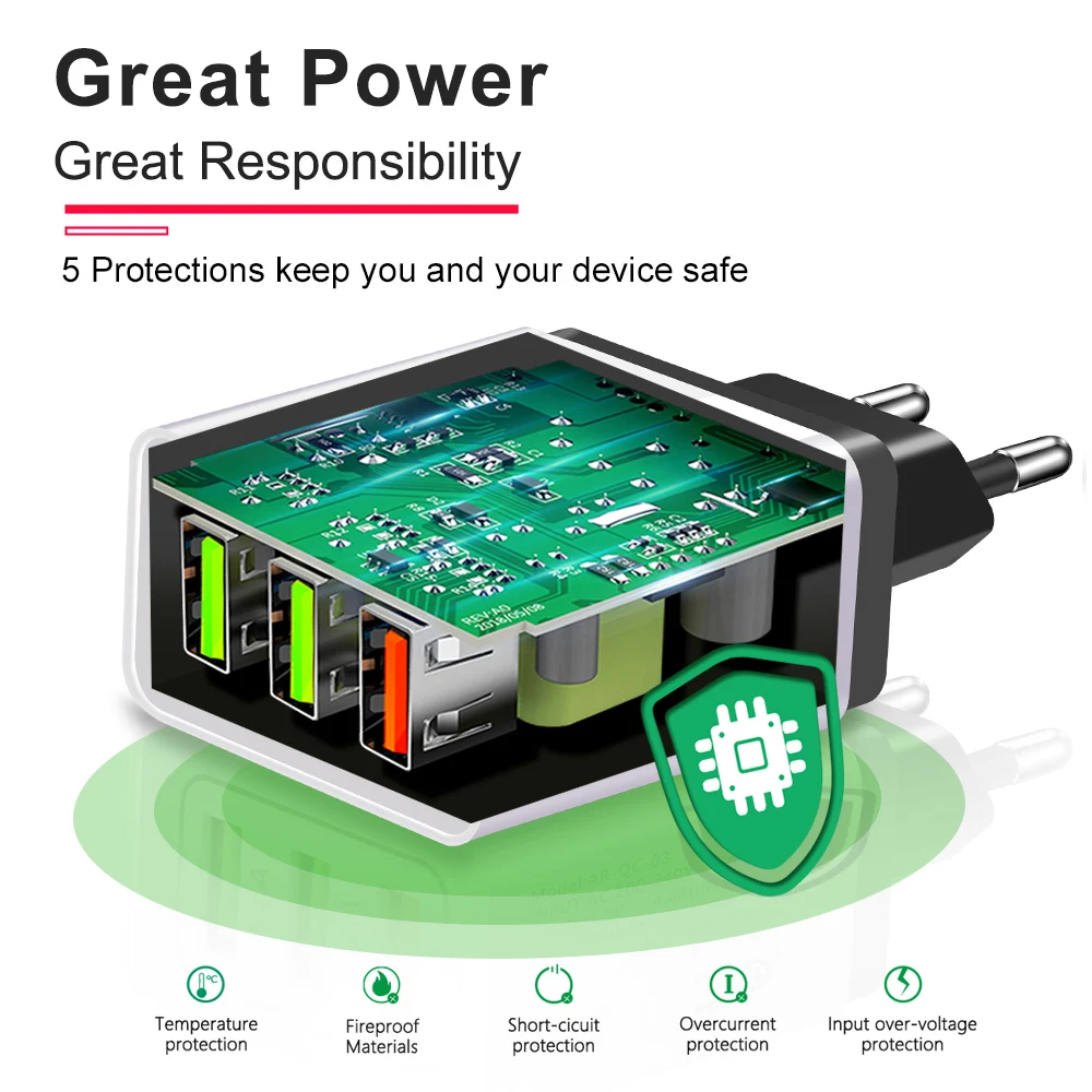 Быстрое зарядное устройство QC 3,0 18 Вт с 3 USB-портами для iphone...