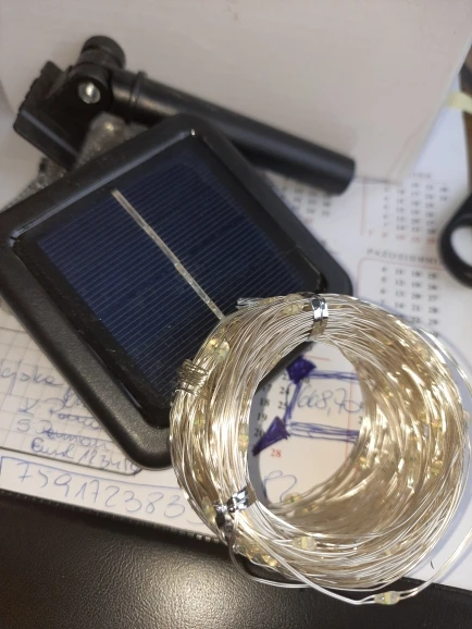 Особенности продукции: 1. Эта замечательная гирсветильник да освещает ночью, идеально подходит для украшения ваших садов, патио, лужайки, крыльца, ворот, двора и т. д. 2. Супер длительное время работы, он может непрерывно работать более 8 часов в ночное время, если панель поглощает достаточно солнечного света в течение дня. 3. Водонепроницаемый, подходит для использования в помещении и на улице. 4. Панель на солнечных батареях выдерживает 20-сантиметровый садовый шип. С включением/выключением, переключателями режимов. 5. С 2 переключателями, один-режим (переключатель преобразования режима мигания), другой-включение/выключение питания (после включения переключателя может автоматическое управление светом и зарядка). Посылка входит 1 x солнечная панель 1x20 см шип 1 Светодиодная гирлянда на солнечной батарее Цвет светодиодный: Белый/теплый белый/многоцветный/синий