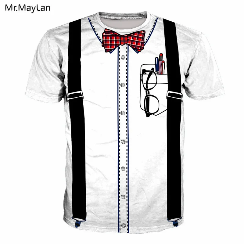 Поддельный нагрудник галстук-бабочка очки ручки печать 3D Футболка мужская и женская хип-хоп белая футболка хипстерская уличная Футболка для мальчика одежда 5XL 6XL