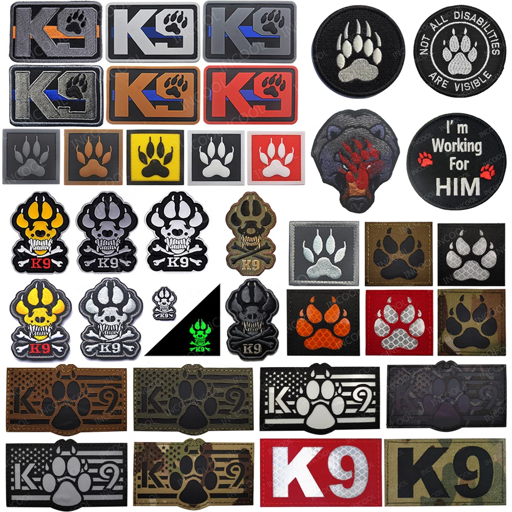 Нашивка с вышивкой в виде собаки, на синей линии, K9, инфракрасная, тактические заплатки