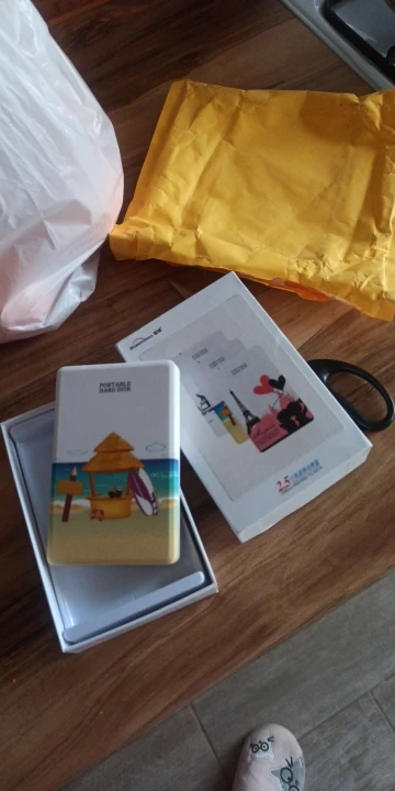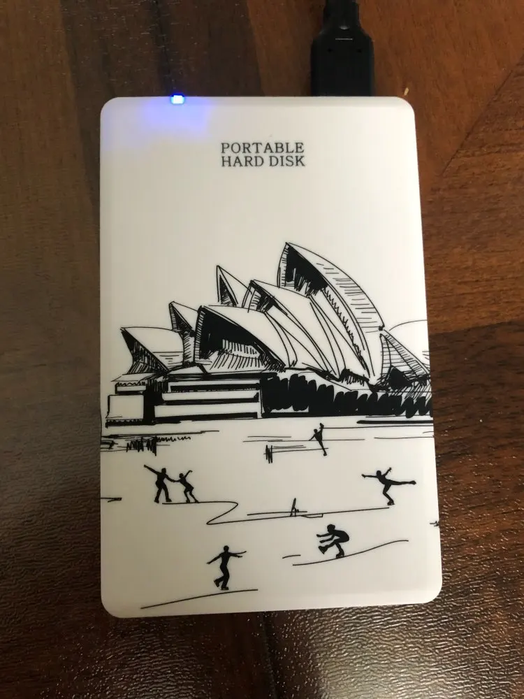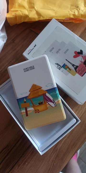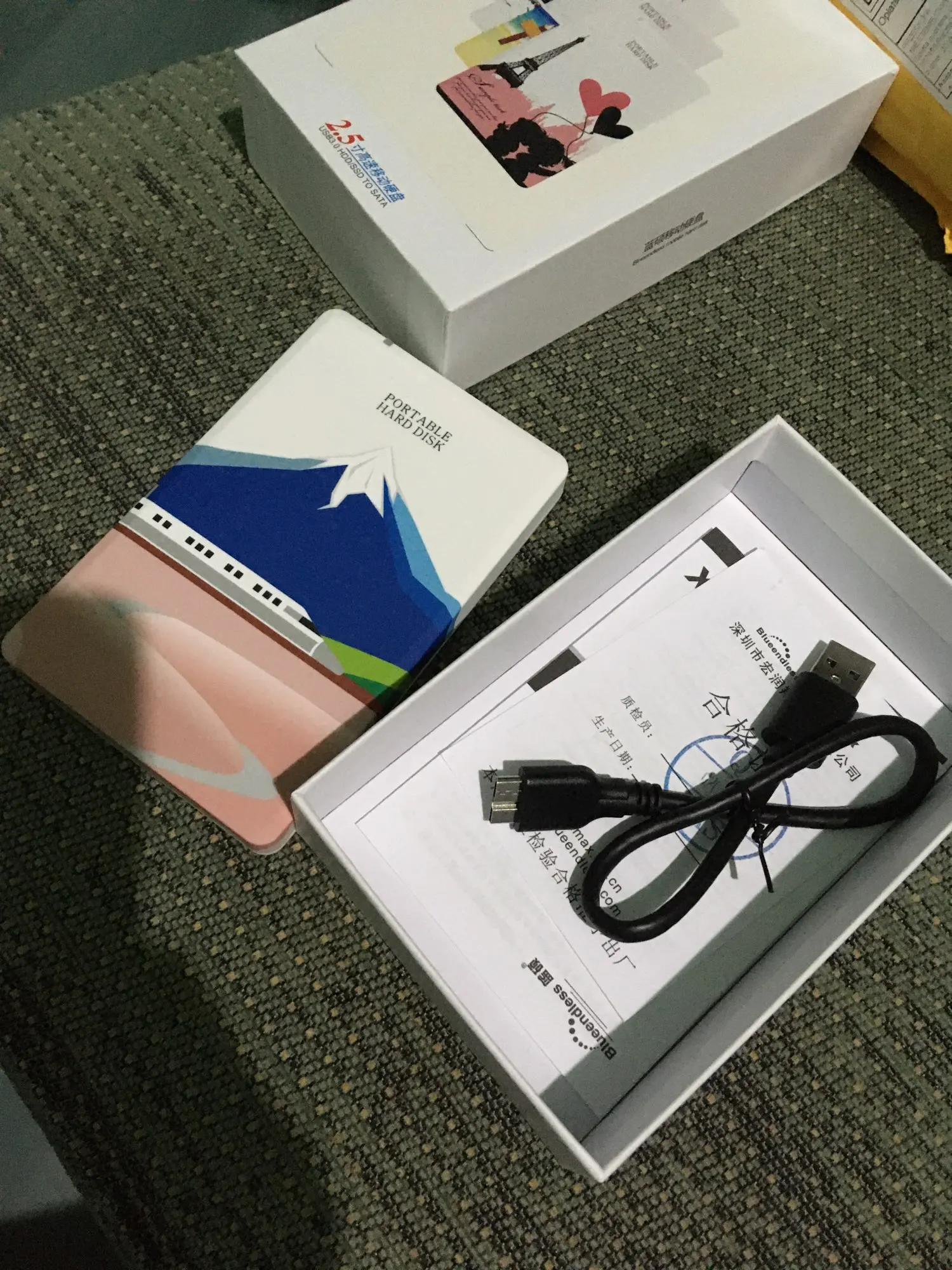 Внешний диск отличный. Всё работает - проверила. Покупала у этого магазина, потому что посоветовали и доказанно временем. Товар надёжный. На ощупь приятный, матовая поверхность, рисунок точно как на фото. Дошёл до Белгородской области за три недели.