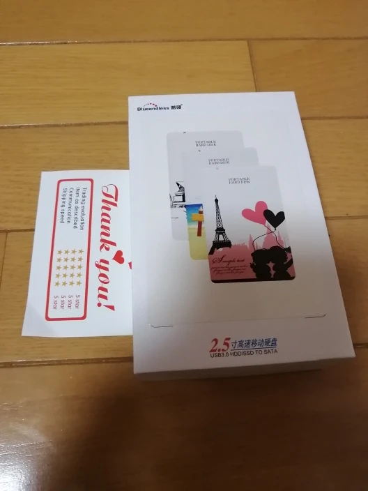 Я прибываю через 10 дней. Фактический размер составляет 596 гигабайт (я заказал 640 Гб), ПК распознает его с китайским именем, но его можно изменить. У него есть USB 3,0, так что скорость хорошая.
