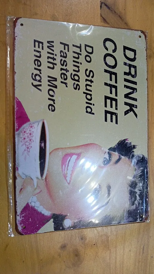 Настенный ретро-плакат 20x30 см, с большей энергией, с надписью пить кофе, жестяная вывеска, декоративная доска