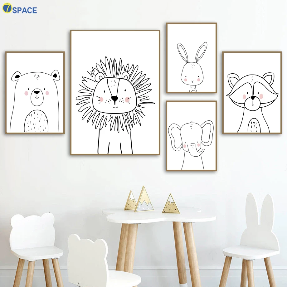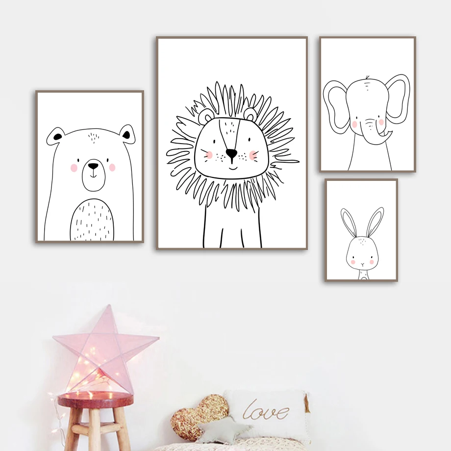 Настенная картина в скандинавском стиле со слоном, львом, жирафом, ...