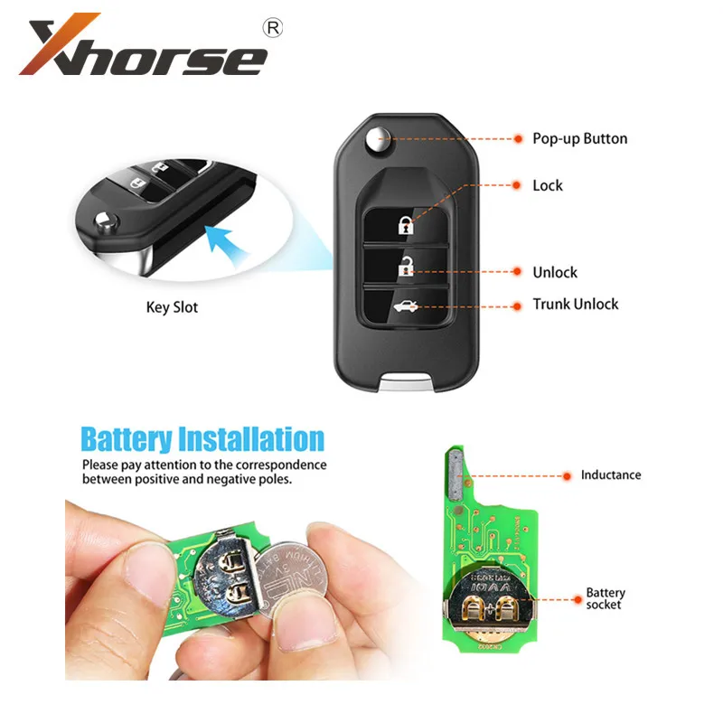 XHORSE XNHO00EN беспроводной универсальный дистанционный ключ для Honda Type 3 кнопки
