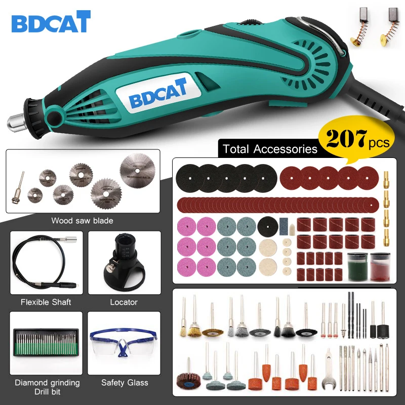 Тип 4:220 В Электрический вращающийся инструмент Мини дрель с валом и 207 шт. аксессуарыТехнические характеристики: