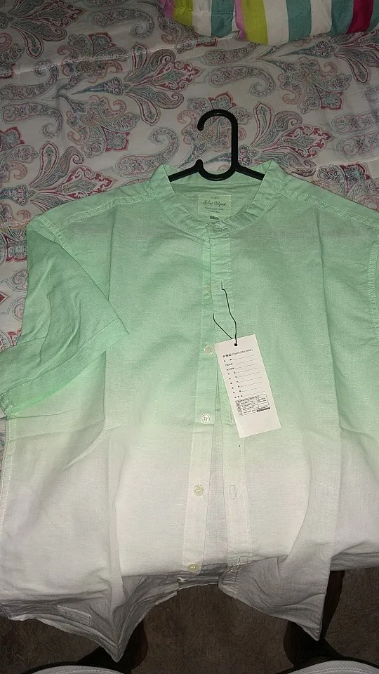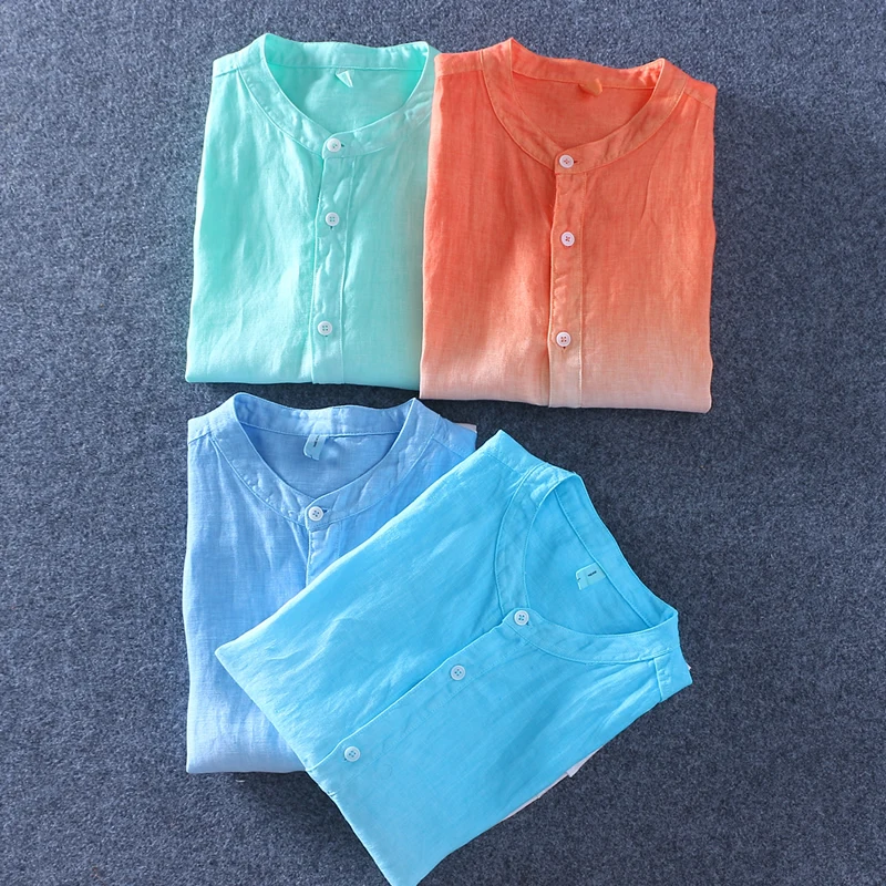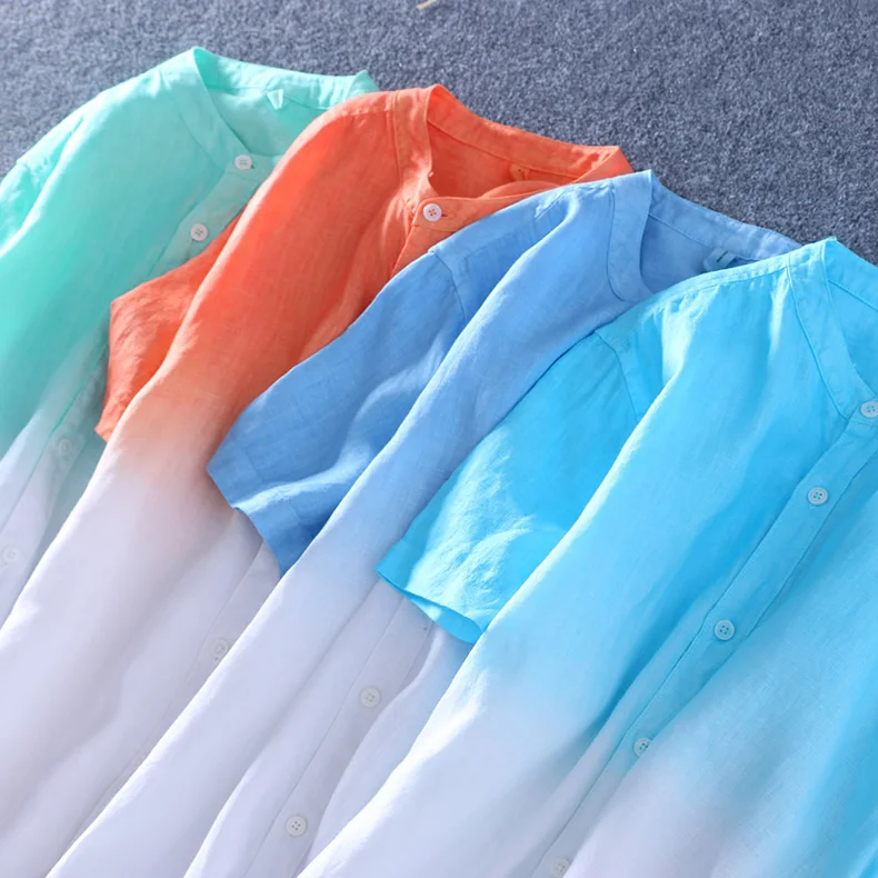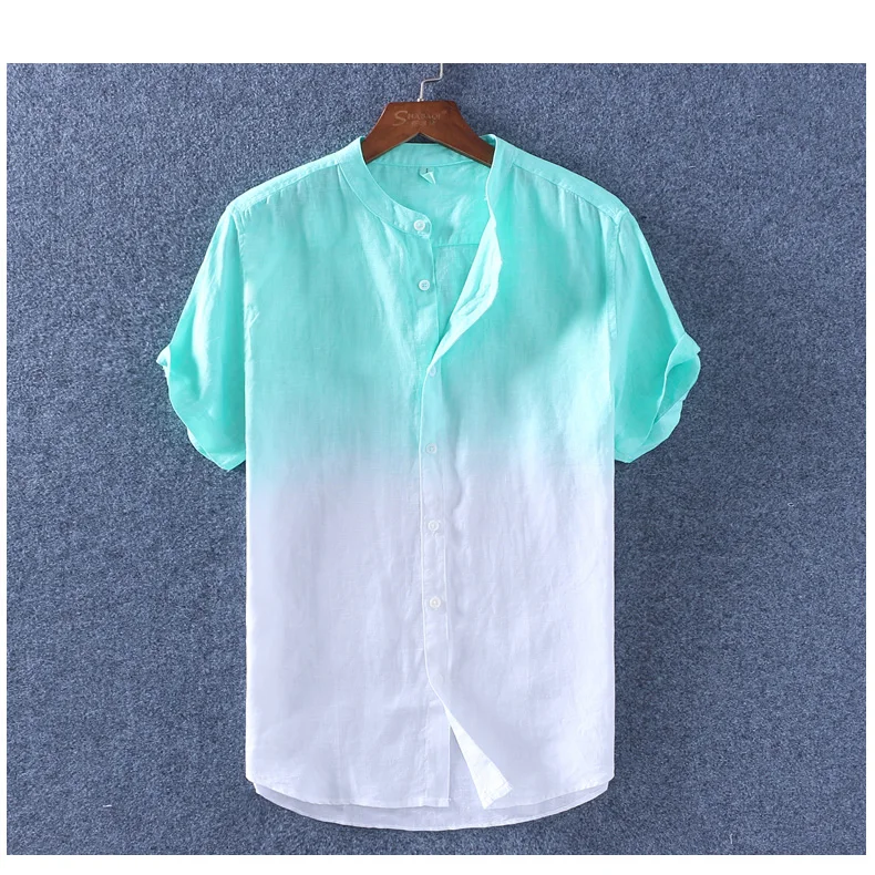Schinteon градиентная Мужская рубашка с короткими рукавами, летняя хлопковая льняная тонкая Удобная рубашка с воротником-стойкой