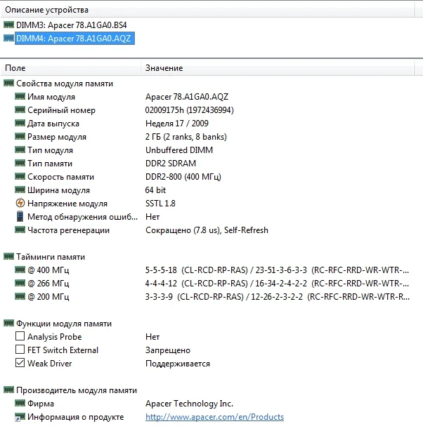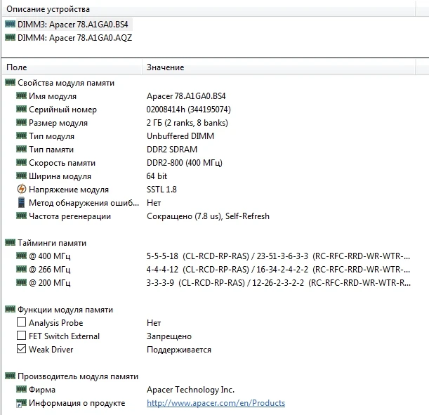 Срок доставки 1 месяц. Рабочие модули памяти. Время: 5-5-5-15 при DDR2-800