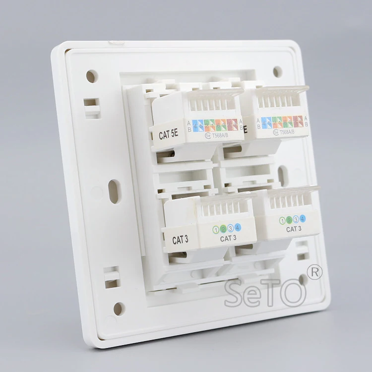 SeTo 86 Тип Двойная сеть Lan RJ45 Cat5e + Двойная RJ11 Cat3 Телефонная настенная пластина разъем Keystone Лицевая панель