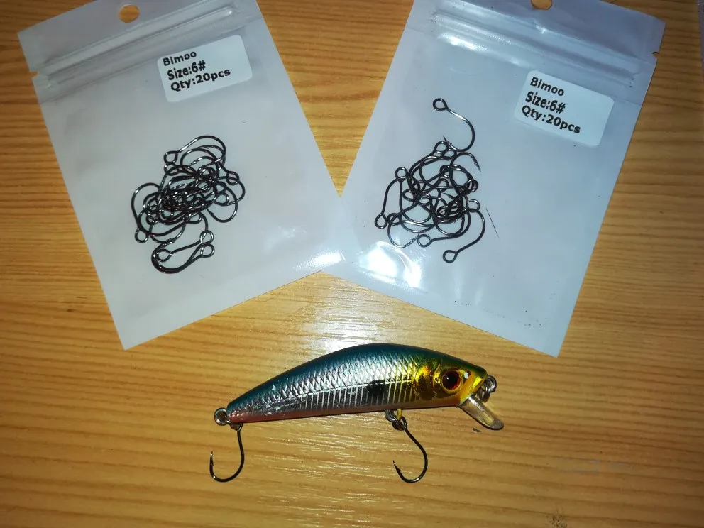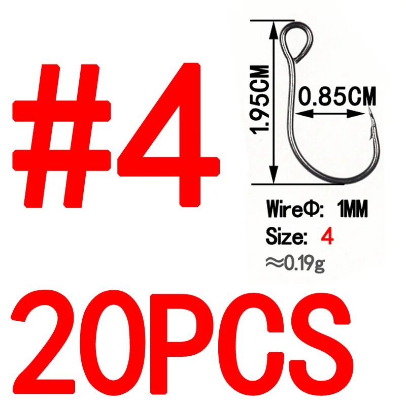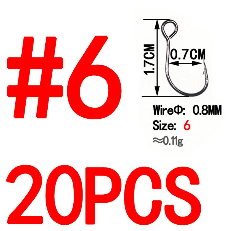 Bimoo, 20 шт., запасной крючок для рыболовной приманки, одиночные крючки для рыболовной приманки, встроенный крючок с большим ушком, Размер 20 10 1 2 4 6 8, острые, из высокоуглеродистой стали