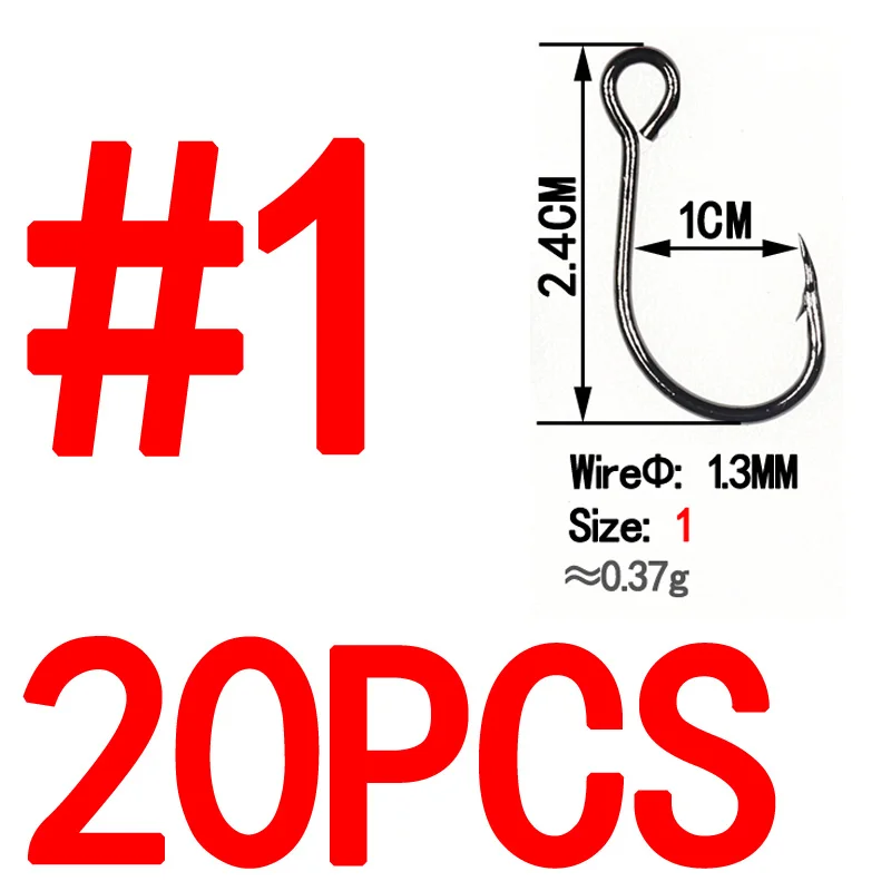 Bimoo 20 шт. для рыболовной приманки запасной крючок одиночные крючки для приманки встроенный крючок Большой размер #2/0 #1/0 #1 #2 #4 #6 #8 Острый Высокоуглеродистая сталь